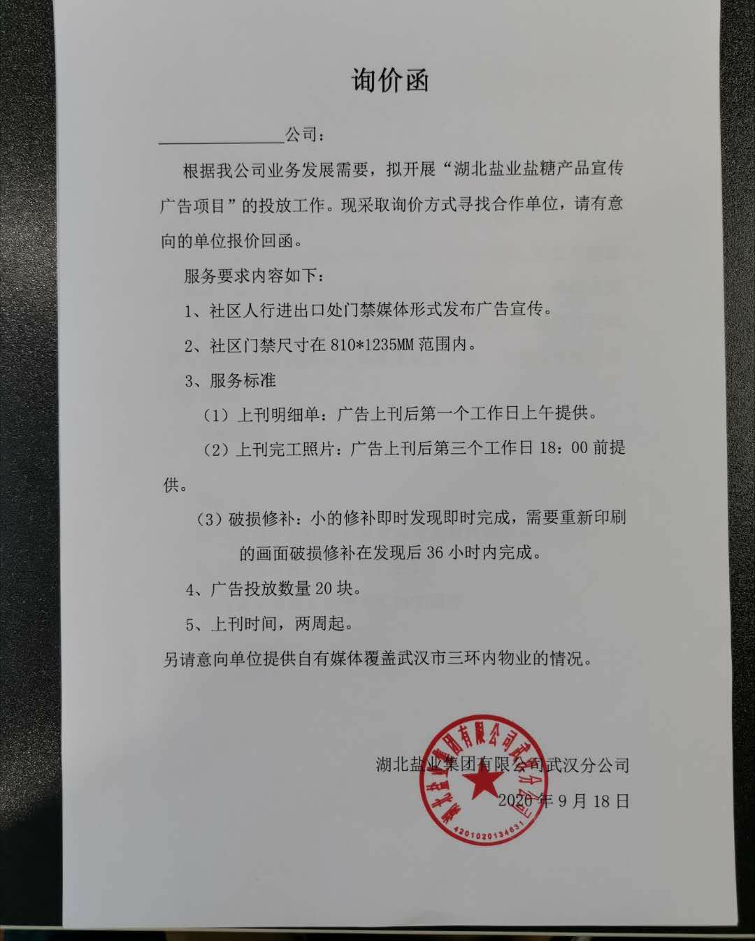 經(jīng)湖北鹽業(yè)集團有限公司武漢分公司對中山大道107號房屋招租報名企業(yè)資格定向評審及湖北鹽業(yè)集團有限公司武漢分公司法律顧問的資格審核,中山大道107號房屋目前擬租賃給武漢仟吉緣酒店管理有...