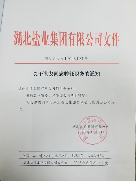 關于湛宏同志任職的通知